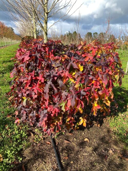 A pyramidal specimen tree with an upright broad growth habit. Green, star-shaped leaves over summer turn dark crimson during autumn. Makes a superb shade or specimen tree. Grows to apx 9 x 5m Height x Width 9 x 5m Range Medium 5-10m Growth Rate Fast Plant Type Tree Shape Pyramidical Country of Origin England Similar to Consider Other Liquidambars, Acer rubrum types, Quercus coccinea or rubra, Pyrus spp. Amelanchier Canadensis, Nyssa Sylvatica - Leaf